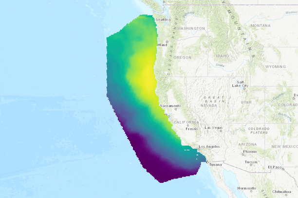 To generate average density surfaces, predictions were made on daily grids encompassing the 1996-2018 surveys (late June – early December). Models thus provide “multi-year average density surfaces” representative of the summer/fall period.