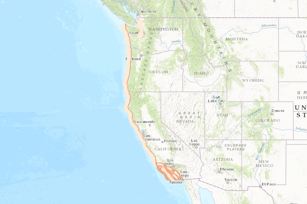 Dataset was modified to show migratory corridors for gray whales on the west coast.