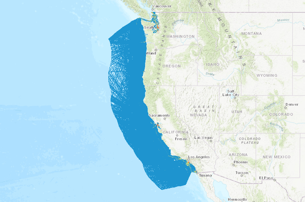Automatic Identification Systems (AIS) are a navigation safety device that transmits and monitors the location and characteristics of many vessels in U.S. and international waters in real-time. In the U.S. the Coast Guard and industry collect AIS data, which can also be used for a variety of coastal planning purposes. NOAA and BOEM have worked jointly to re-task and make available some of the most important records from the U.S. Coast Guard's national network of AIS receivers. These datasets represent annual vessel transit counts summarized at a 100 m by 100 m geographic area. A single transit is counted each time a vessel track passes through, starts, or stops within a 100 m grid cell. These datasets have been resampled to a 300m x 300m resolution.