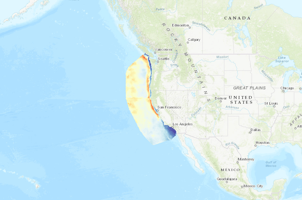 Overview: This dataset provides seasonal spatial rasters of predicted long-term (1980-2017) density throughout the Pacific Outer Continental Shelf (OCS) and adjacent waters off of the contiguous United States at 2-km spatial resolution. The maps represent model-derived spatial predictions of long-term average density, in units of individuals per km2. The maps do not provide predictions of the actual number of individuals of a given species or taxonomic group that would be expected in a given area; they only indicate where a given species/group may be more or less abundant.